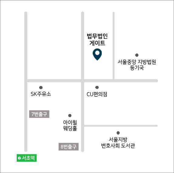지하철 이용시2호선 서초역 7번 출구 도보 3분거리